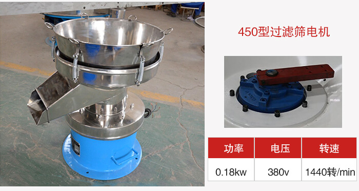 1、450液體過(guò)濾篩:電機(jī)功率0.18kw,電壓380v,轉(zhuǎn)速1440轉(zhuǎn)每分鐘。