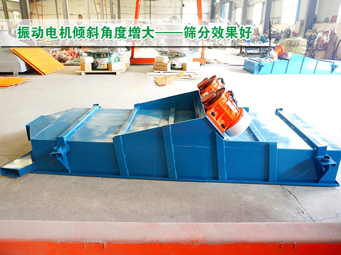 在振動電機(jī)的功率大小與振動篩型號匹配的情況下,振動電機(jī)的傾斜角度我們都采用標(biāo)準(zhǔn)角度:45度,如果增大傾斜角度篩,會使篩上物水平受力就會減小,簡單來說就是物料在篩面的上下跳動幅度會加高,物料向前運(yùn)動的速度就會減慢,這樣就能達(dá)到精篩的效果,即篩分效果好。