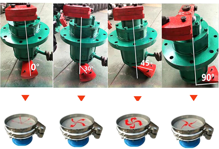 圓形振動篩振動電機偏心塊夾角展示圖