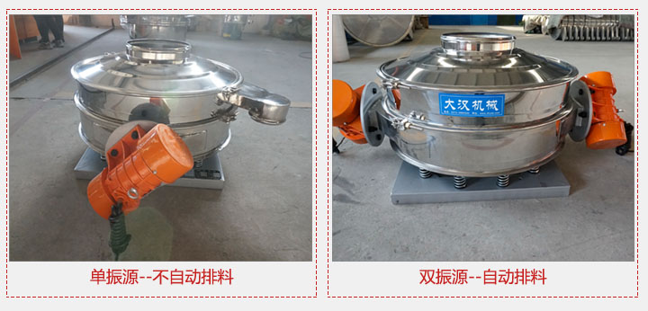 直排篩分單振源與雙振源兩種,其中單振源直排篩用到物料上主要產(chǎn)生上下振動(dòng),無(wú)自動(dòng)排料功能,而雙振源直排篩使物料在篩面表面產(chǎn)生漩渦運(yùn)動(dòng),有自動(dòng)排料功能。