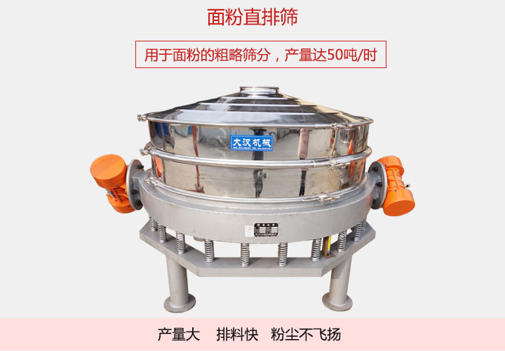 面粉直排篩 又稱面粉振動(dòng)篩,面粉直排篩因?yàn)槌隽峡谠谙路?,排料比較方便而且容易于其它工序連接。面粉直線篩采用304不銹鋼材質(zhì)而成。