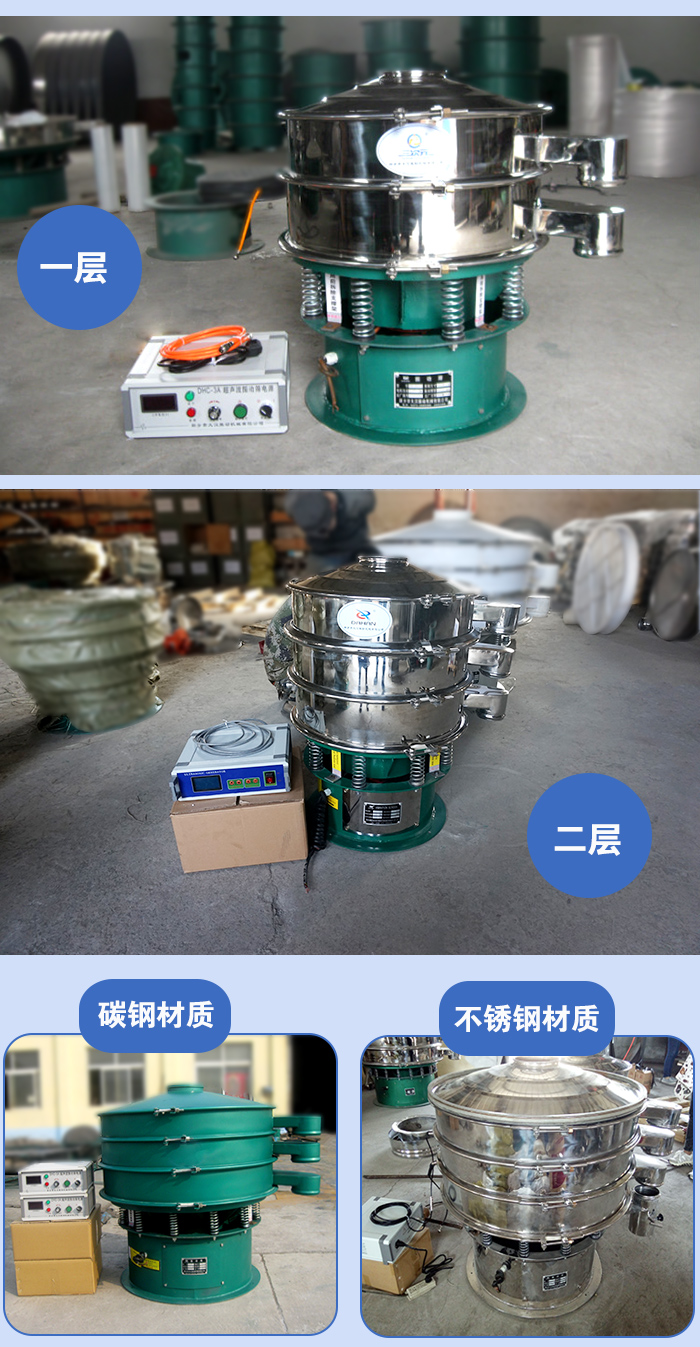 產(chǎn)品簡介:超聲波振動篩利用超聲波頻率振動篩網(wǎng),振動頻率可達(dá)每秒36000次,可使細(xì)粉狀物料在篩網(wǎng)上形成微懸浮狀態(tài),能更快地通過篩網(wǎng)而不產(chǎn)生靜電和粘在篩網(wǎng)上,篩分精度可提高80%以上,產(chǎn)量提高2-5倍。
