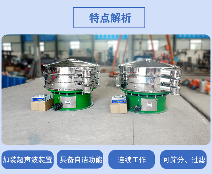 超聲波振動篩是在旋振篩的基礎(chǔ)上加裝了一套超聲波系統(tǒng)。由超聲波電源、換能器,共振環(huán),連接線四部分組成。好處主要有: