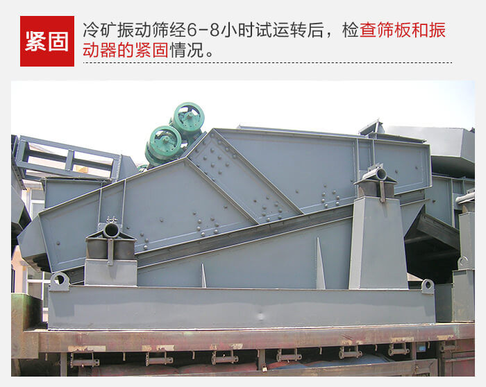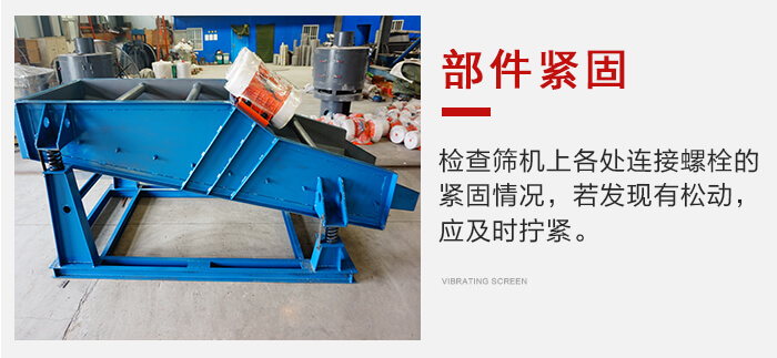 應(yīng)經(jīng)常檢查篩機(jī)上各處連接螺栓的緊固情況,若發(fā)現(xiàn)有松動,應(yīng)及時(shí)擰緊。