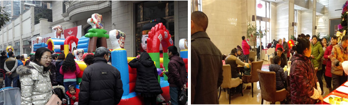售樓部外那座“從天而降”的童話城堡,著實(shí)吸引著孩子們的目光。許多小孩拖著家長,迫不及待的躍入這個(gè)可愛的移動(dòng)城堡中打鬧嬉戲,活力十足的感受著新年的喜悅。家長們似乎也沉浸其中,樂此不疲的看著孩子們嬉笑追逐。當(dāng)然光有童趣是不夠的,喜樂會(huì)還帶來了傳統(tǒng)的中國結(jié)DIY,熱情的工藝?yán)蠋焸冋ば牡闹笇?dǎo)熱心的市民如何去編制這美美的中國結(jié)。當(dāng)然你也可以突發(fā)奇想,做一個(gè)你心目中的時(shí)尚中國結(jié)。一位老婆婆就正借此機(jī)會(huì),用她的巧手展示著她高超驚人的編織技藝,引得圍觀人群贊不絕口。紅紅的中國結(jié),也給這寒冷的第一天帶來了陣陣的暖意。